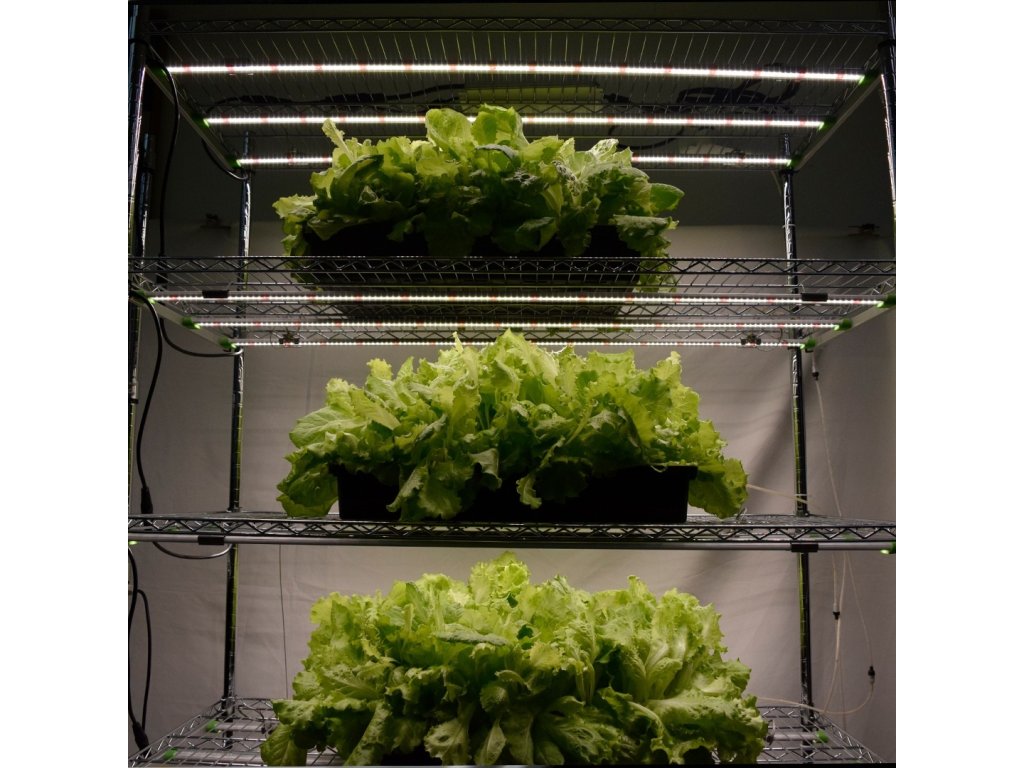 Liniové LED osvetlenie pre regálové pestovacie systémy s celkovým výkonom 100W. Osvetlenie je stmievaťelné od 5% do 100%. Súčasne so stmievaním znížite aj odber svietidla, takže pri intenzite 20% bude zo siete odoberať iba 20-30W. Spektrum svetla je vhodné pre pestovanie bylín a predovšetkým microgreens, aj šalátom a jahodám sa bude pod týmto svietidlom dariť.