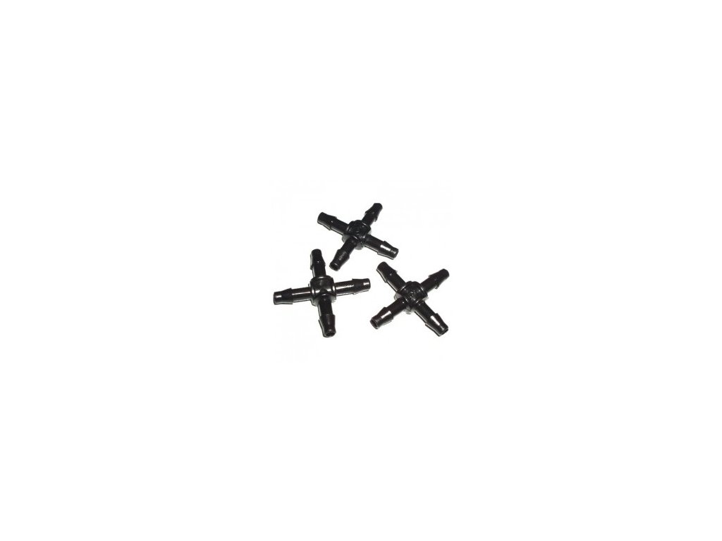 Autopot 6 mm krížový spoj rozdeľuje hadicu do štyroch smerov. Ideálny pre rozšírenie zavlažovacieho systému.