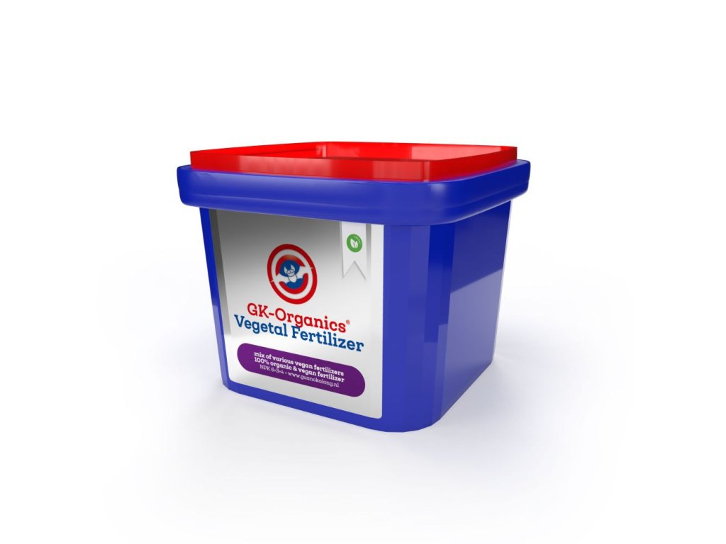 GK-Organics® Vegetal Fertilizer je hnojivo vyrobené z rastlinných materiálov, vrátane extraktu z vína, lepkovej múky, kakaových škrupín, semien z hrozna a fosforečnanu vápenatého, čo z neho robí komplexnú a ekonomickú alternatívu k hnojivám živočíšneho pôvodu.