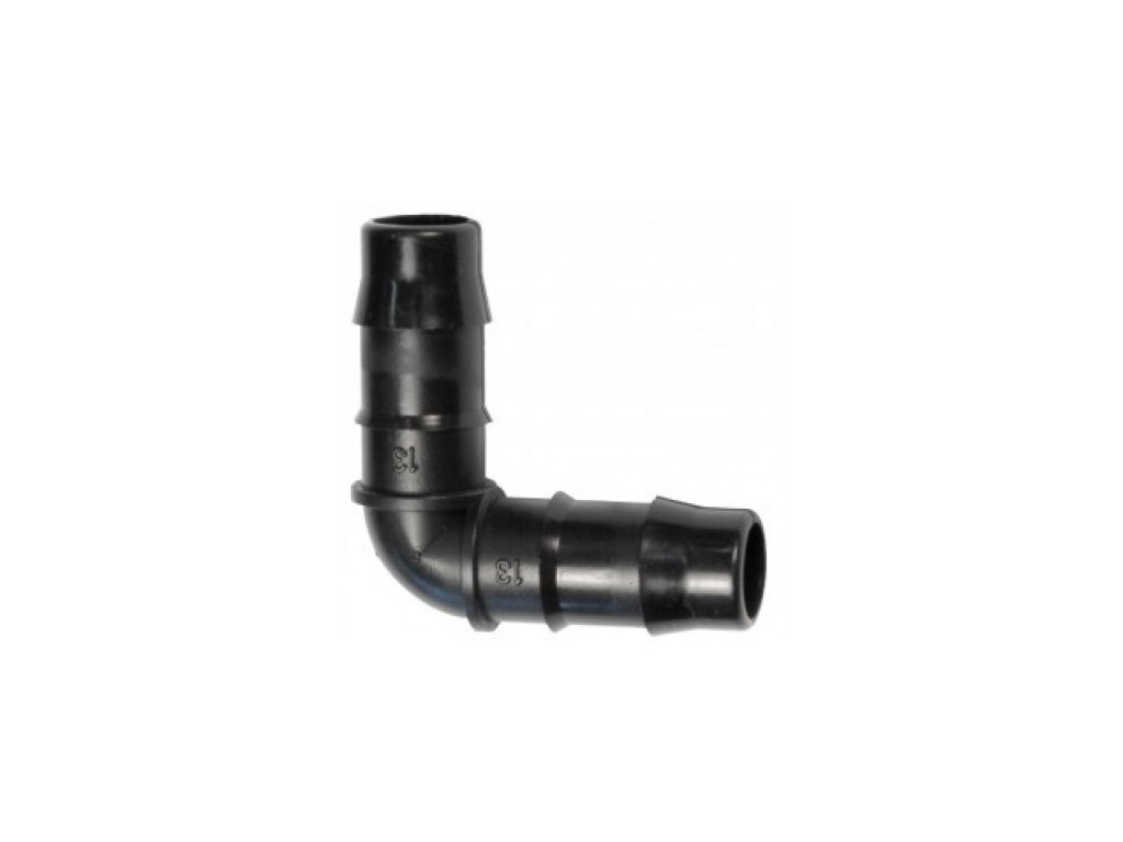 Irritec PE L - kus 16 mm slúži na spojenie hadíc pod pravým uhlom a umožňuje jednoduchú zmenu smeru vedenia.
