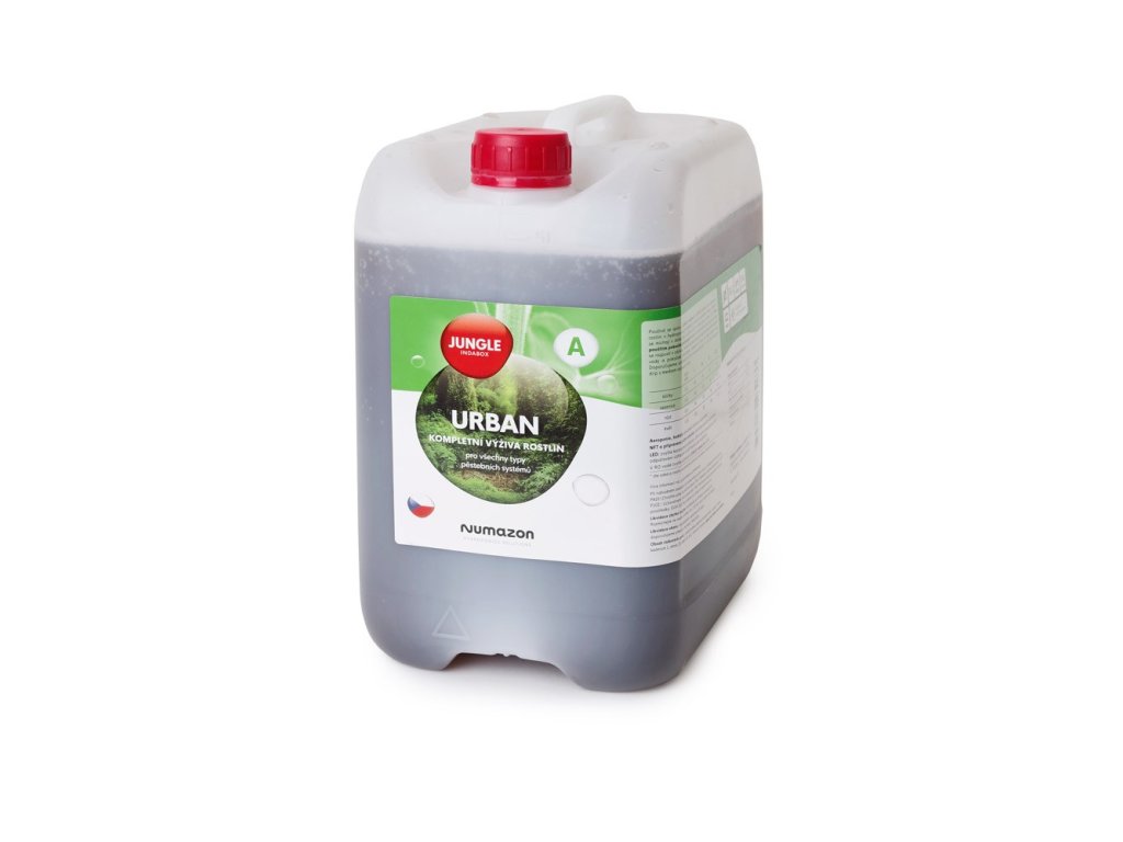 JUNGLE URBAN A je vysoce účinné komplexné hnojivo, ktoré podporuje zdravý rast a vývoj koreňového systému rastlín. Obsahuje prírodné zdroje cytokinínov, vitamínov a aminokyselín, ktoré prispievajú k optimálnemu rastu rastlín. Toto hnojivo sa používa vždy spolu so zložkami URBAN Mikro a URBAN B.