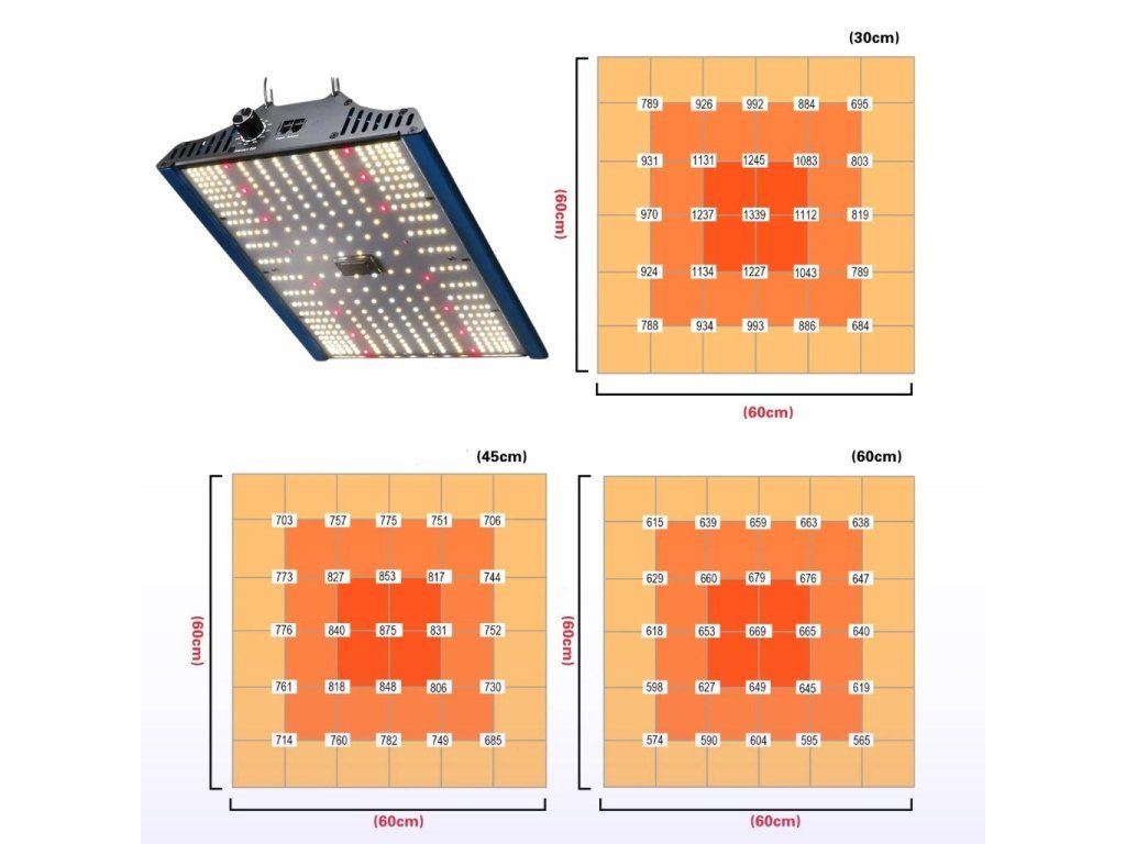 Výkonný LED panel s plným spektrom a možnosťou regulácie intenzity, ktorý umožňuje presné nastavenie svetelných podmienok podľa fázy rastu rastlín.