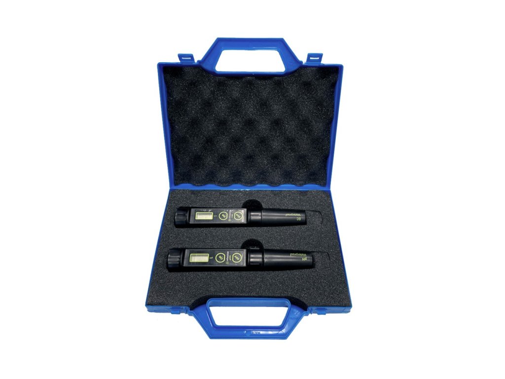 Milwaukee EC66 a pH51 sada v kufríku. Pre svoju odolnosť sú ideálne pre pestovateľské účely. Balenie obsahuje kalibračné roztoky.