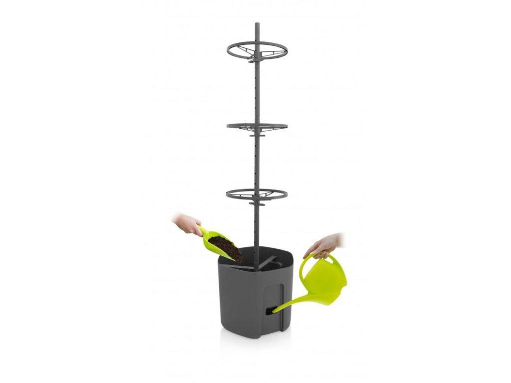 Tomato pot - kvetináč na pestovanie paradajok poskytne optimálne podmienky pre rast a pestovanie paradajok priamo doma. S rastom rastliny možno prispôsobiť výšku konštrukcie až do 18 polôh. Kvetináč je vyrobený z recyklovateľného plastu.