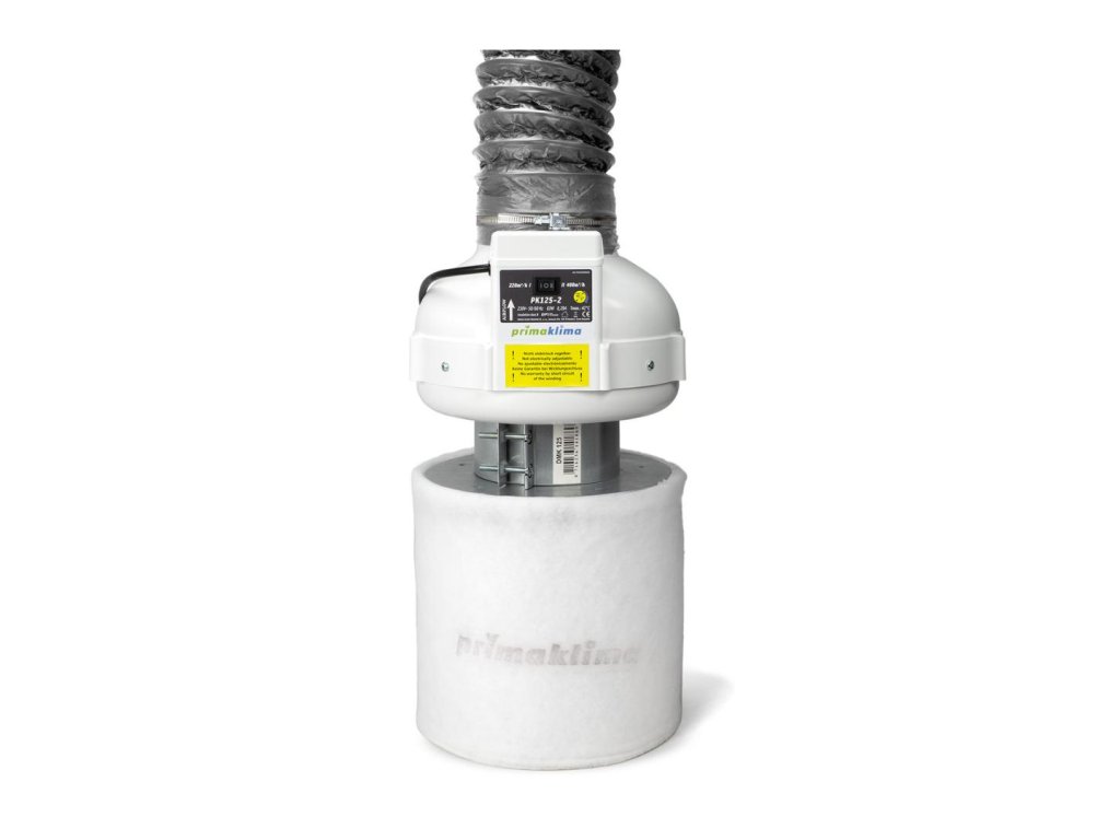 Prima Klima Ventilation Set s ventilátorom PK125-2 s dvoma rýchlosťami a filtrom K2601-flat-125 s aktívnym uhlím. Súčasťou je tiež 3 m vzduchová trubica, kovová svorka a spojka 125 mm. Maximálny prietok vzduchu až 400 m3/h. Efektívny a tichý systém vetrania pre váš priestor.
