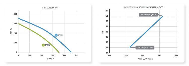 Ventilátor PK125WHSP-2 je dvojrýchlostný s maximálnym prietokom vzduchu až 460 m3/h. Má prírubu o priemere 125 mm a je napájaný striedavým prúdom 230 V pri príkone 63 W. Vďaka teplotnej ochrane je prevádzka bezpečná až do 50 °C. Je kompaktný, s rozmermi 315 × 309 mm a hmotnosťou 2,73 kg (celkovo 4,43 kg). Tento ventilátor je ideálny pre efektívnu a tichú ventiláciu v menších priestoroch.
