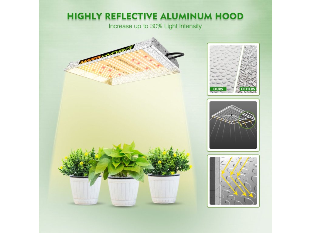 LED GROW svetlo MARS HYDRO TS600 využíva 240 LED diód značky EPISTAR. Zariadenie používa biele LED diódy, ktoré lepšie simulujú prírodné svetlo a dodávajú rastlinám potrebné živiny. Tieto diódy sú tiež menej náročné na spotrebu, preto zariadenie nepotrebuje hlučný ventilátor na chladenie. Absencia ventilátora taktiež znižuje hmotnosť. Reflexný dizajn svetla zabezpečuje rozptyl svetla a jeho intenzitu.