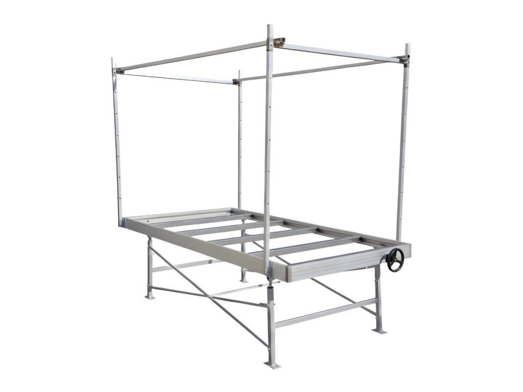 Kovová konštrukcia posuvného pestovacieho stola bez pestovacej vaňe a ďalšieho príslušenstva. Dodávané v demontovanom stave.