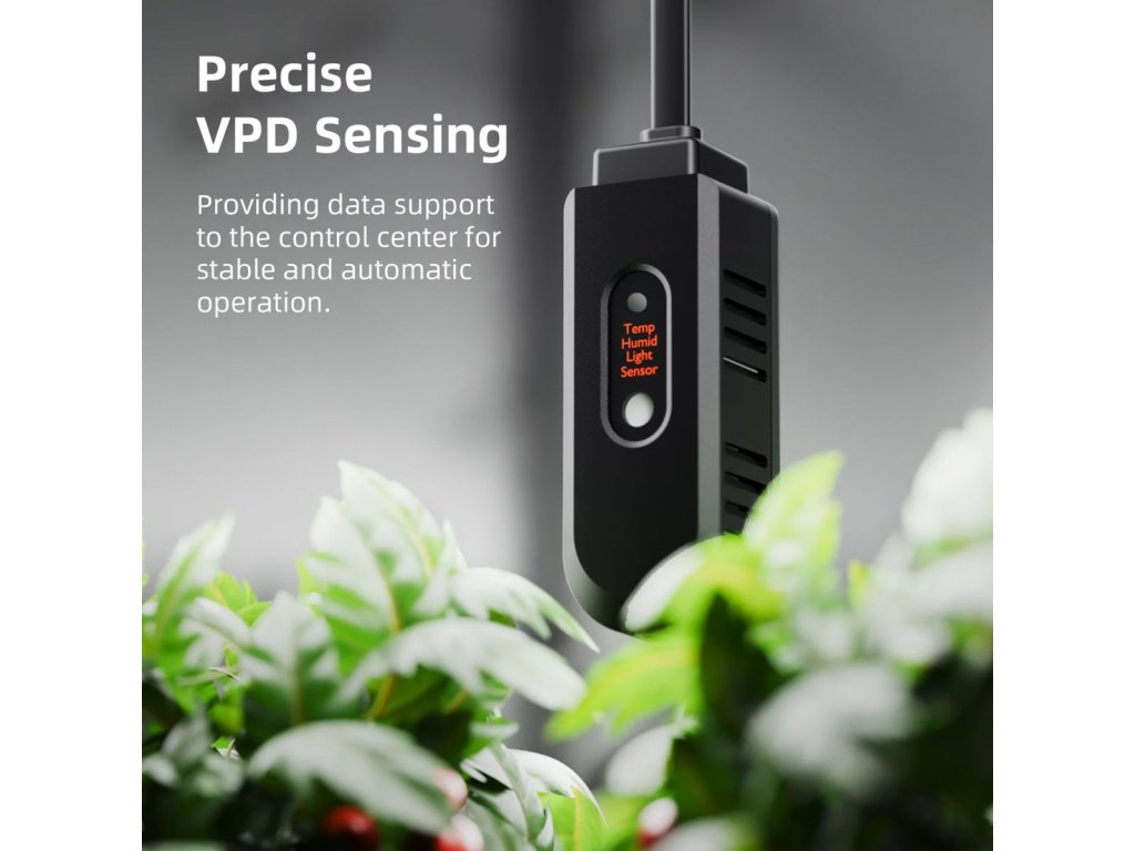 - Senzor teploty, vlhkosti a svetla sleduje podmienky v pestovateľskom stane a optimalizuje prostredie pre rastliny.