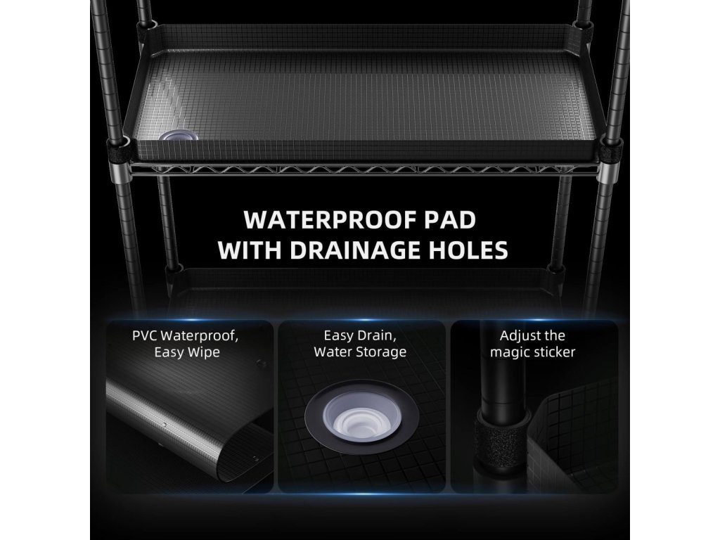 - Kompletné balenie – dostanete všetko, čo potrebujete pre úspešné predpestovanie: LED osvetlenie, pestovací stojan, drôtové poličky, vodotesné podložky a pestovací stan.