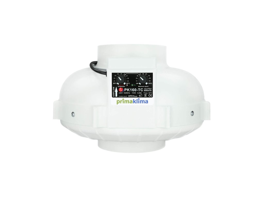Prima Klima PK160-TC je vysoko účinný potrubný ventilátor s reguláciou teploty, vybavený AC motorom ebm-papst s kýlovito zakrivenými lopatkami. Max. prietok vzduchu je 800 m3/h, pri príkone 110 W. Celý kryt je vyrobený z nárazuvzdorného, nehorľavého polyamidu (nylónu) a ventilátor obsahuje obojživelne guľôčkové ložiská, ktoré zaistia výnimočne hladký a tichý beh motora.
