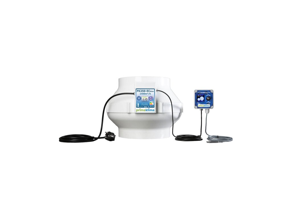 Prima Klima PK250-ECblue je vysoko efektívny potrubný ventilátor s prírubou 250 mm, vybavený prémiovým EC motorom od ebm-papst, ktorý vďaka EC technológii zaručuje veľmi nízku spotrebu energie. Ventilátor poskytuje vysoký prietok vzduchu až 1 450 m3/h a je vhodný pre profesionálne inštalácie v potrubných systémoch.