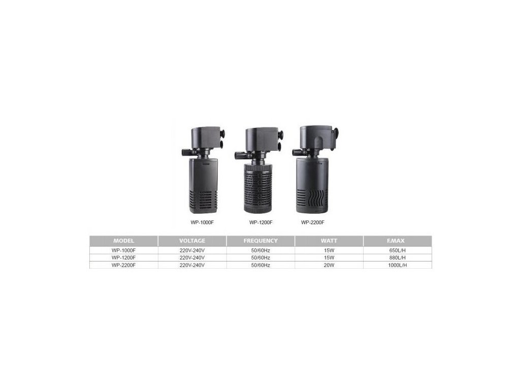 Technické parametre vnútorného filtra s motorom
