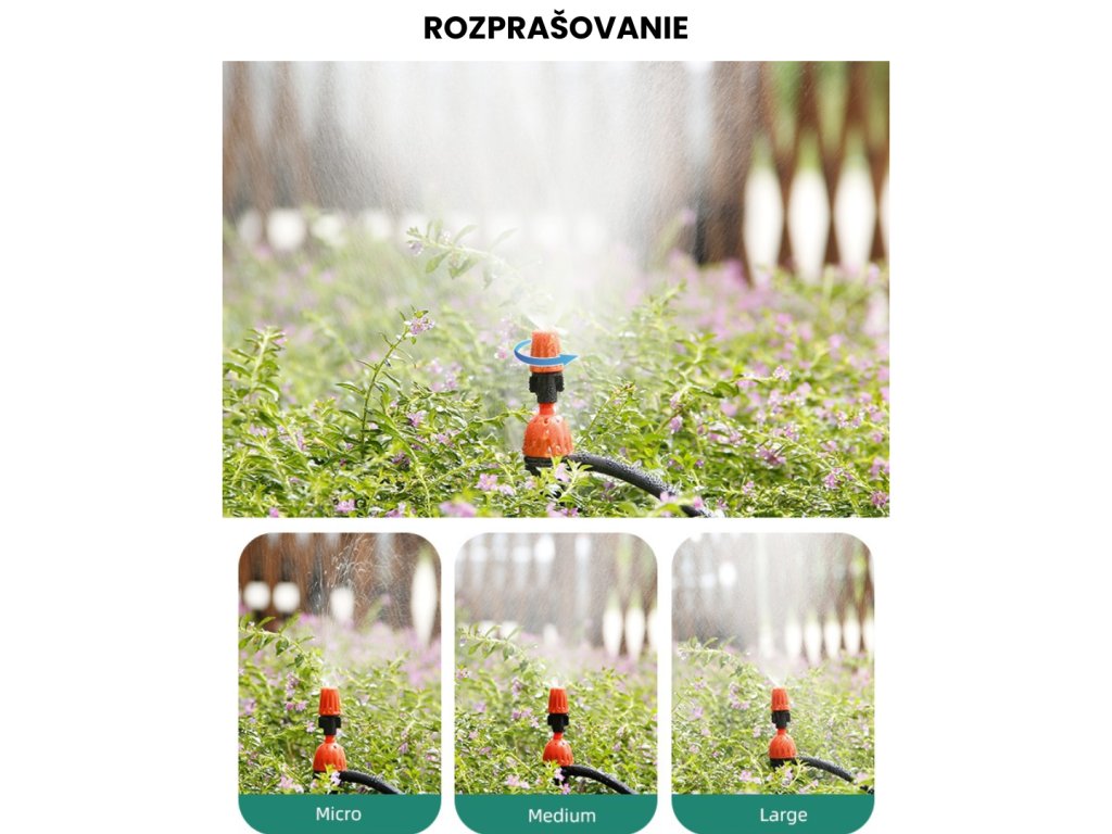 Odporúčané použitie: zavlažovanie pre malé, stredné aj veľké rastliny v kvetináčoch, okrasné záhony, okrasné kroviny, úrodné záhony a ďalšie podobné vonkajšie miesta.